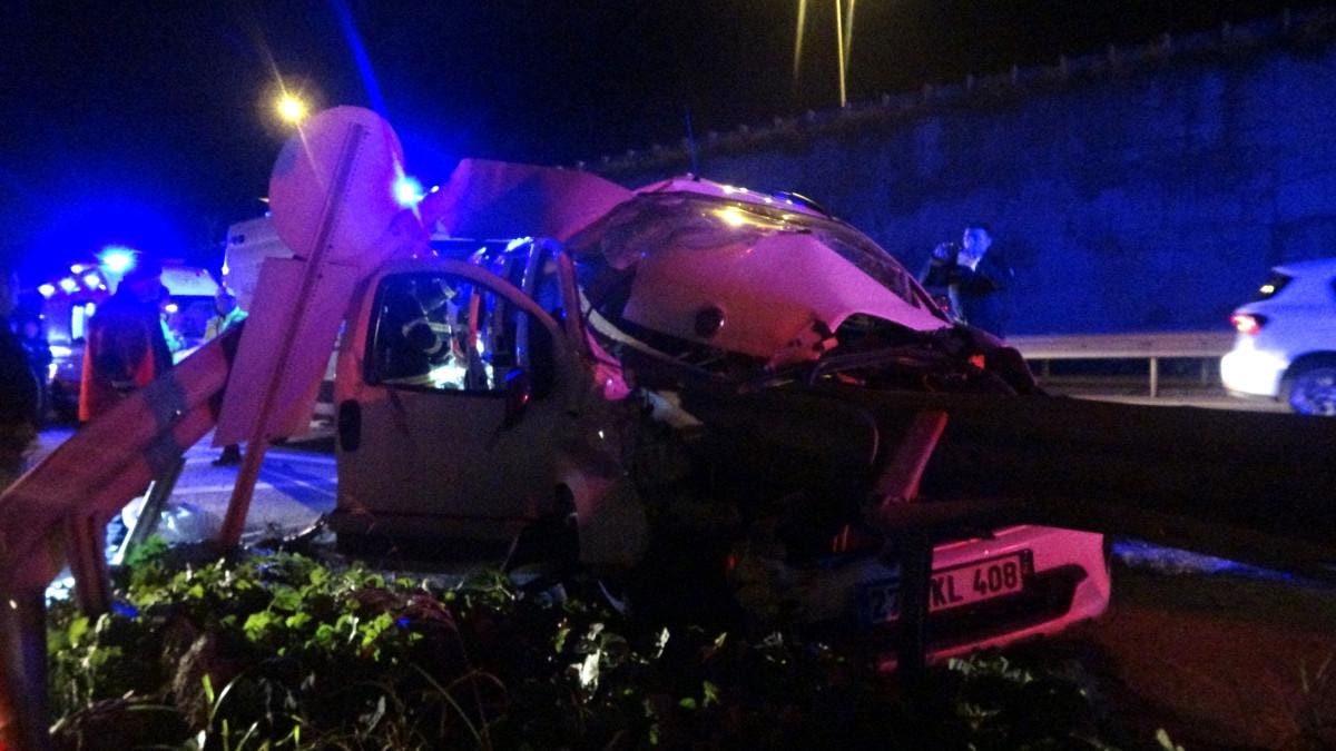 Çarpmanın şiddetiyle aracın ön camından giren çelik bariyer, arka koltuğa kadar ilerledi. Kazada, sürücü Ersin B, ön sağ koltukta oturan anne Nuriye B. ve baba Mehmet B. yaralandı. Kazayı gören diğer sürücüler, 112 Acil Çağrı Merkezine ihbarda bulundu. İhbar üzerine adrese itfaiye, sağlık ve polis ekipleri sevk edildi.