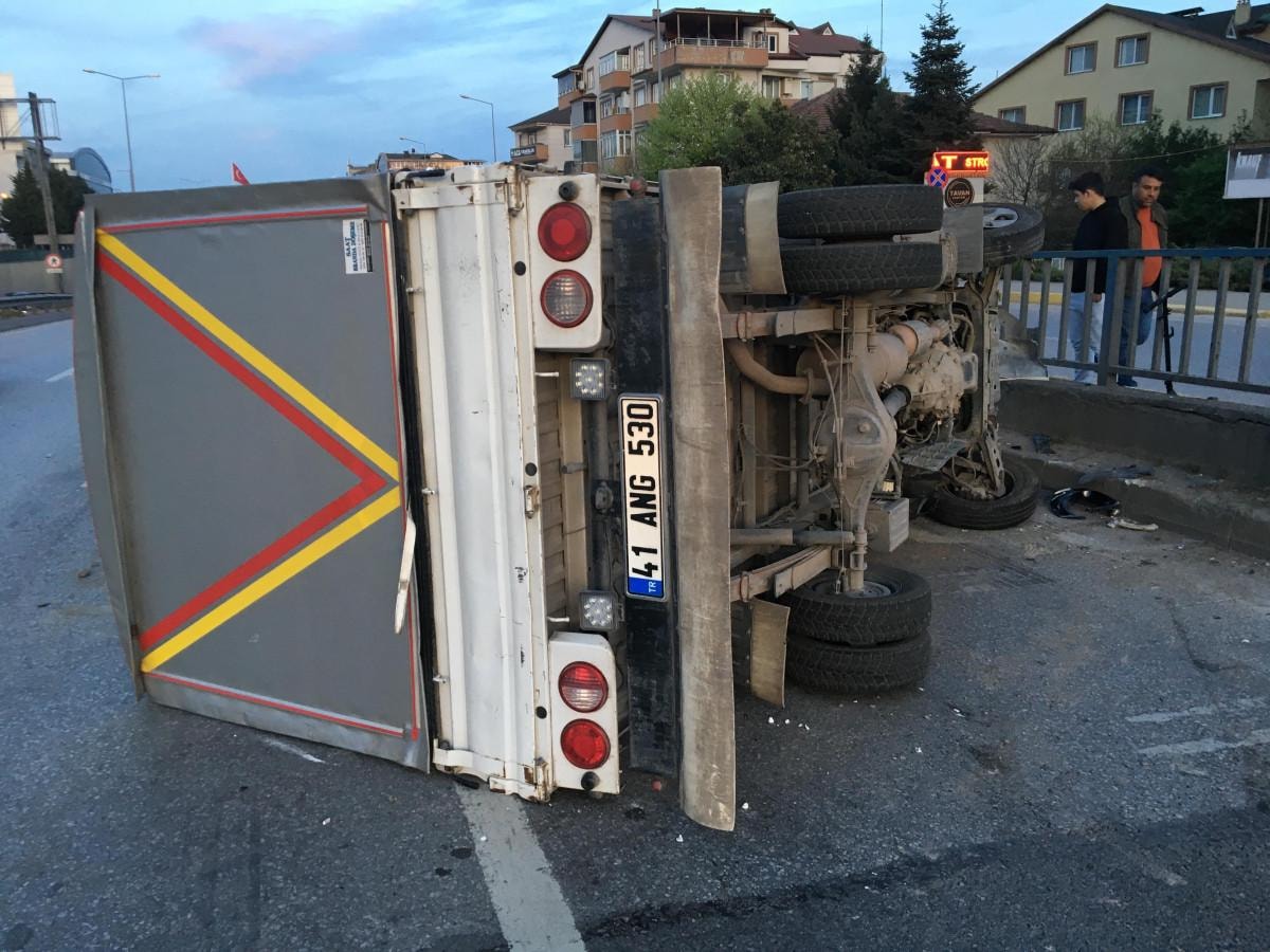 Çarpışmanın şiddetiyle hafif ticari araç yol kenarındaki bariyere savrulurken, kamyonet devrildi. Kazada sürücüler M.S. ve A.G. yaralandı.