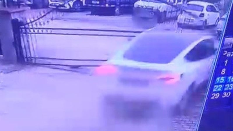 Kocaeli'de kontrolden çıkan otomobilin sitenin demir kapısını kırarak ortalığı savaş alanına çevirdiği anlar güvenlik kameralarına yansıdı.
