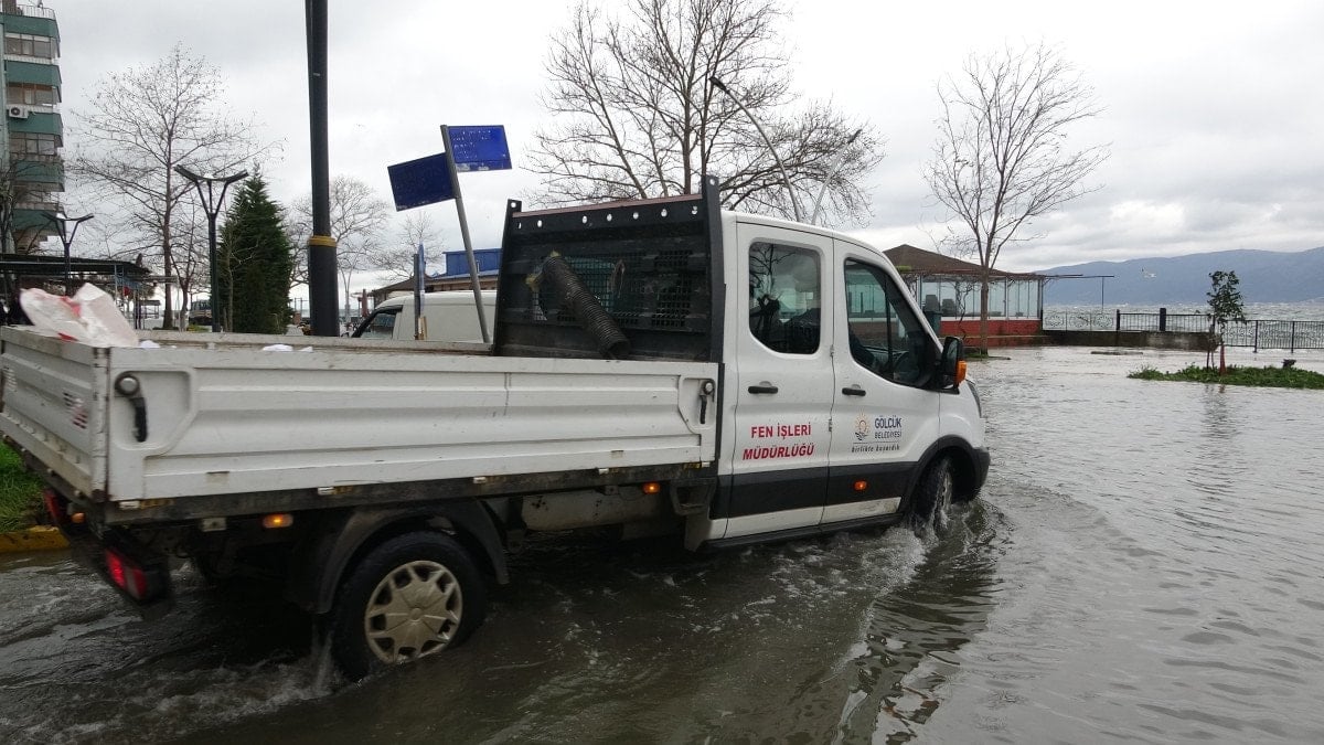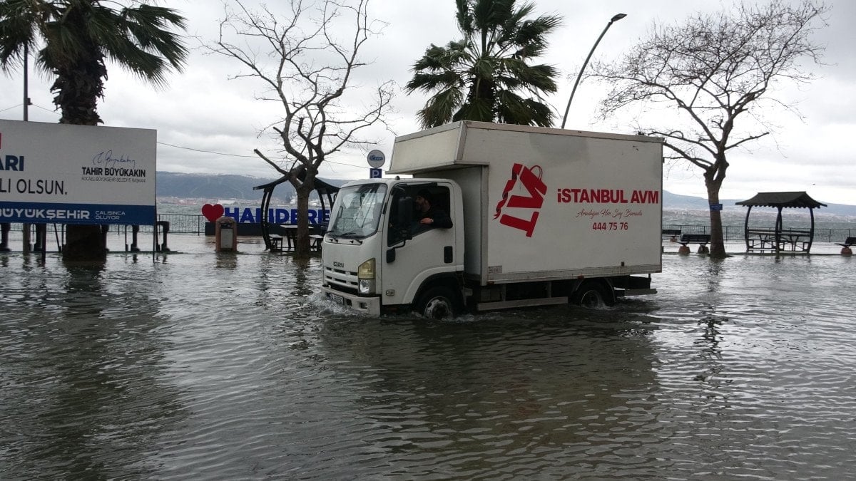 Başiskele ilçesi sahil kesiminde de yollar göle döndü.
