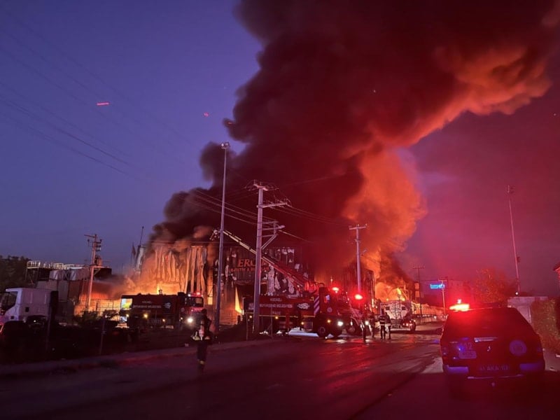 İtfaiye ekipleri yangına müdahalesi sürerken, gökyüzünü siyah duman sardı.