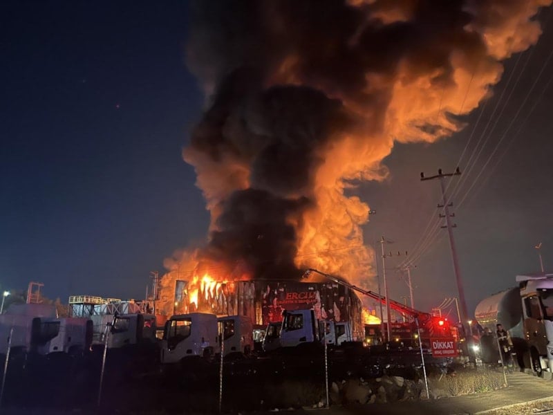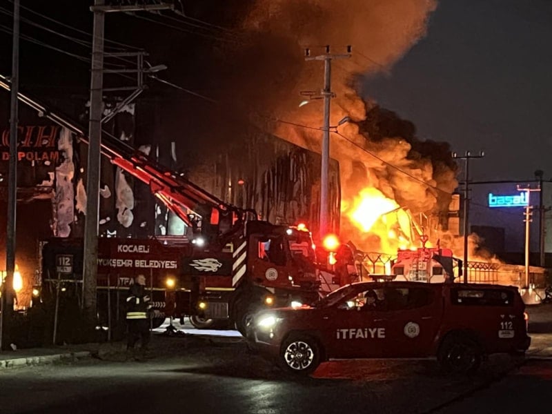 Başiskele ilçesinde lojistik deposunda yangın çıktı. Ekiplerin alevleri söndürme çalışmaları sürüyor.