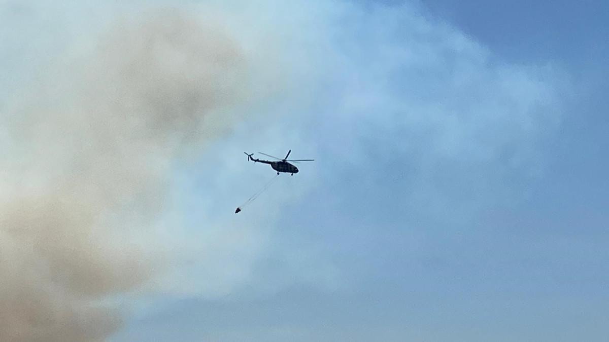 Ekipler, rüzgarın da etkisiyle yayılan alevleri kontrol altına almak için arazözlerle karadan, yangın söndürme helikopteriyle de havadan müdahale ediyor.