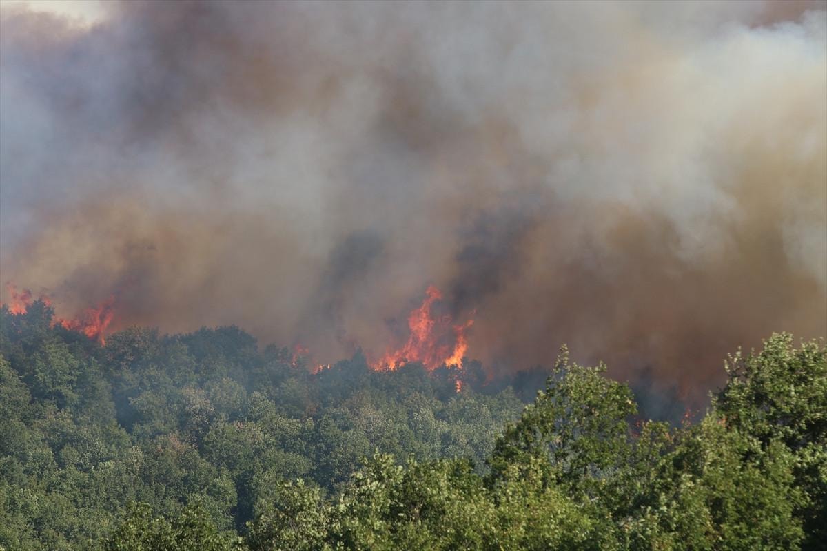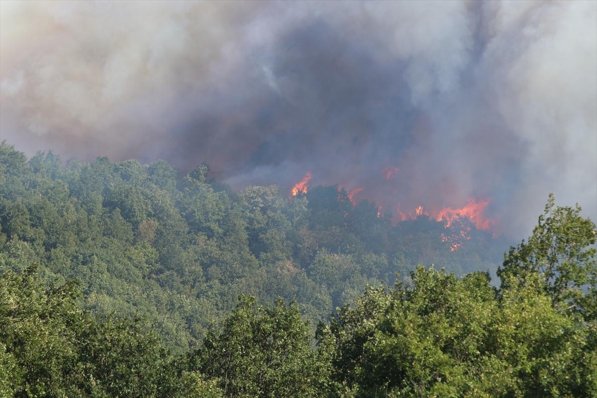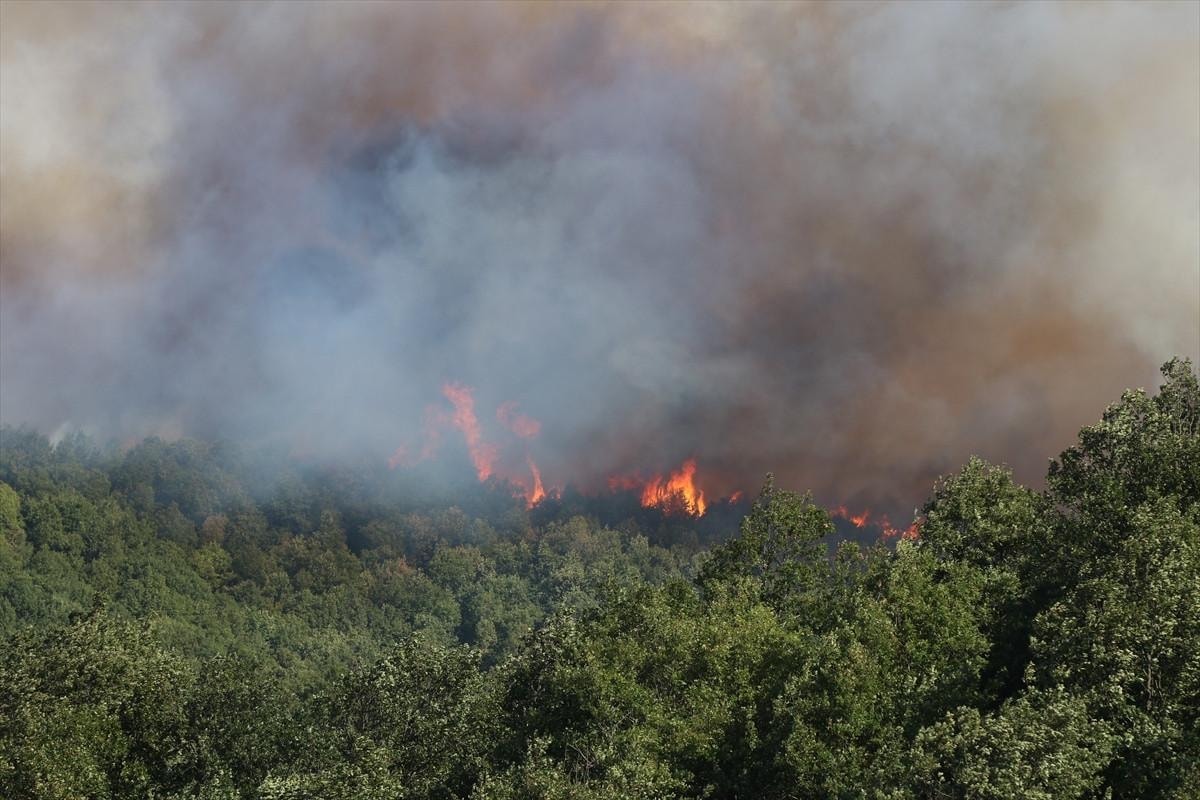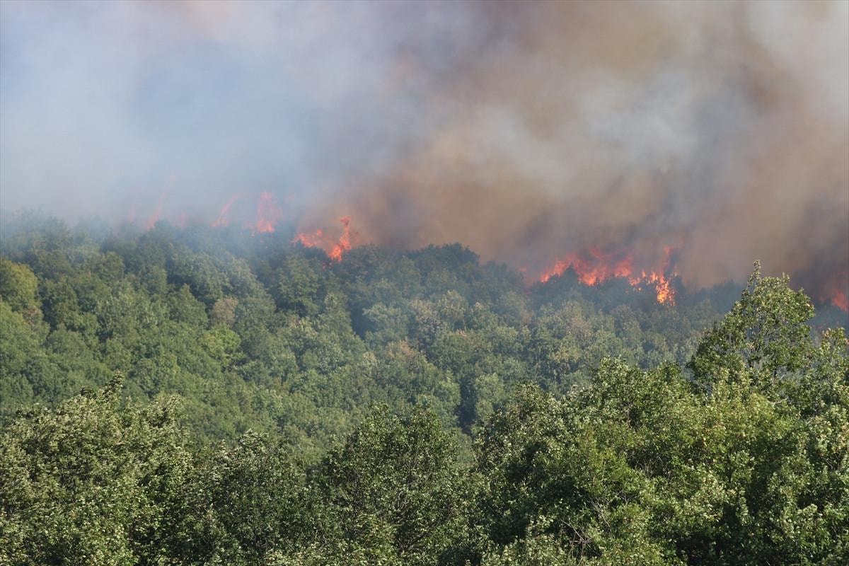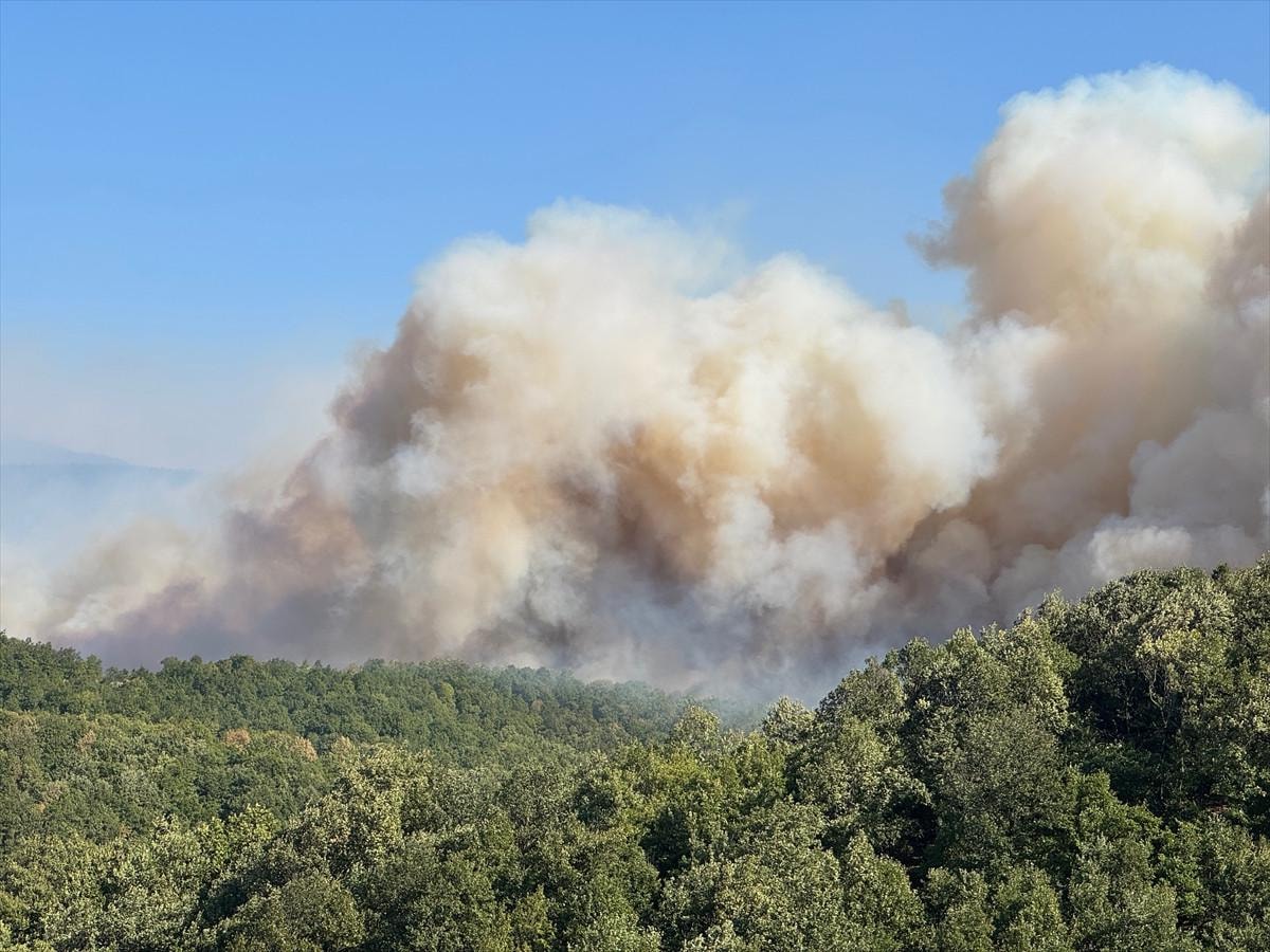 Kocaeli’de ormanı yangınıyla mücadele sürerken, alevlerin geniş alana yayılması nedeniyle Akçat köyü boşaltılıyor.
