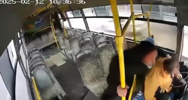 İzmit D-100'de seyir halindeyken şoförün bayılması sonucu kontrolden çıkan özel halk otobüsü, önce bir otobüse sonra bariyerlere çarptı. Yolcunun otobüsü durdurma çabası kameraya yansıdı.
