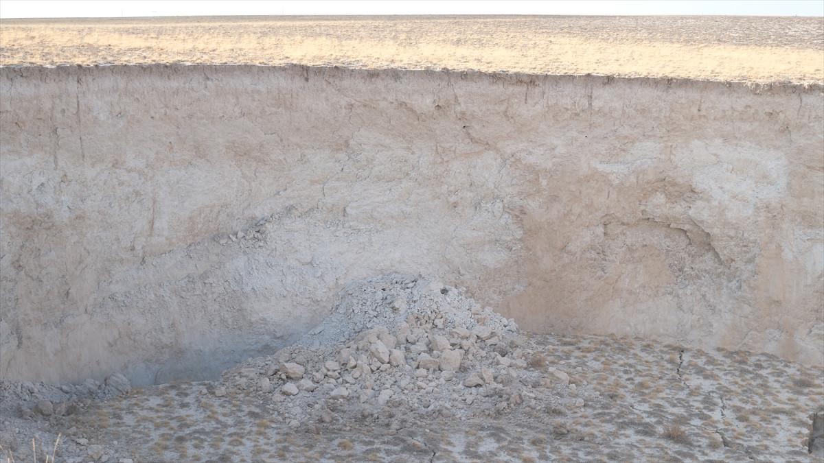 Konya'nın Karapınar ilçesinde bir pancar tarlasının yanında, Mısırlı Yaylası mevkiinde merada oluşan bir obruk, tarlada çalışan işçiler tarafından fark edildi.