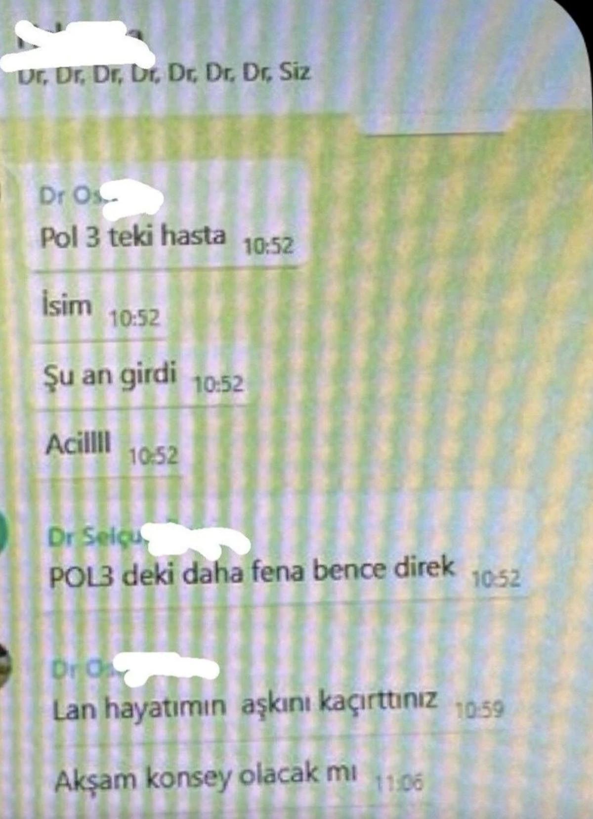 Konya Selçuk Üniversitesi Tıp Fakültesi Hastanesi'nde çalışan bazı sağlık çalışanlarının, kadın hastalar hakkında uygunsuz Whatsapp yazışmalarının ortaya çıktığı iddia edildi.