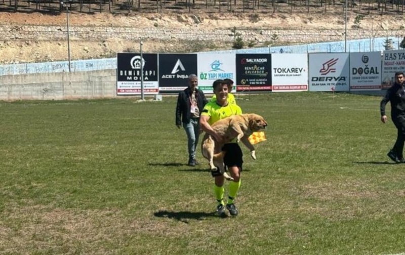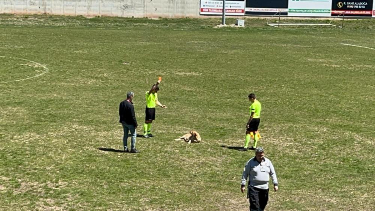 Hakem Murat Balıkçı, saha ortasına uzanıp yatan davetsiz misafiri görünce oyunu durdurdu. Ardından yanına giderek esprili bir şekilde cebinden çıkardığı kırmızı kartı köpeğe gösterdi. Sahadaki görevli ekiplerin sözlü uyarı ve sevgi dolu yaklaşımlarına rağmen yerinden kalkmayan sevimli misafire hakem bir kez daha kırmızı kart gösterdi. Ancak bu jest de sonuç vermeyince, hakem köpeği nazikçe kucaklayarak saha dışına taşıdı.