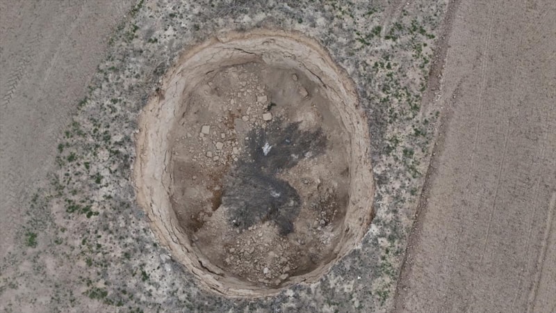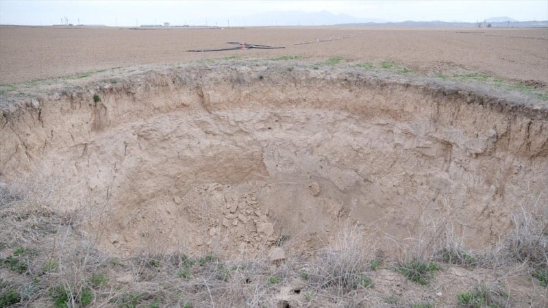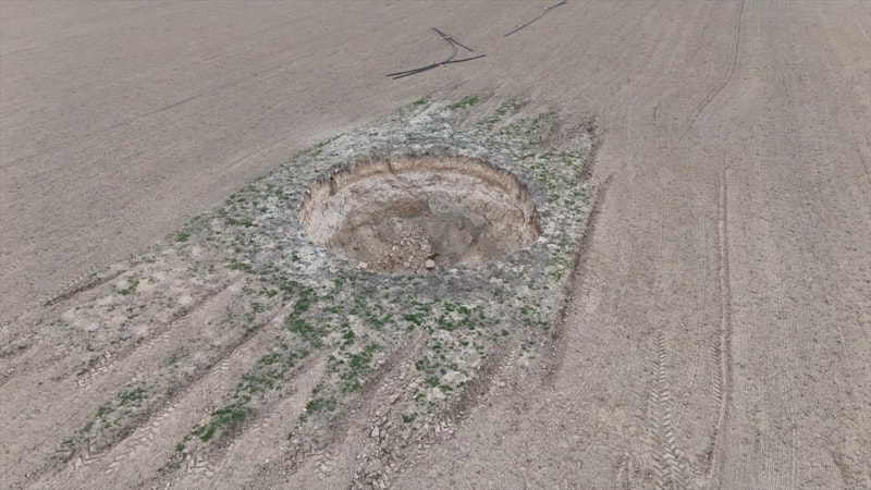 Konya'nın Karapınar ilçesindeki Apak Yaylası yakınlarında, yaklaşık 8 metre derinliğinde ve 20 metre çapında bir obruk, 15 gün önce tarlada ekim yapan işçiler tarafından fark edildi.
