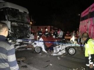 Çarpmanın şiddetiyle otomobil, halatla bağlı olduğu kamyonun altına girdi. Kazada, sürücü Vedat Ceylan, annesi Redife Dinçcan ve yanlarındaki tarım işçisi Hediye Ulutaş olay yerinde yaşamını yitirdi. Hediye Ulutaş'ın kızı Evin Ulutaş ile tır şoförü Ahmet Şimşek de yaralandı.