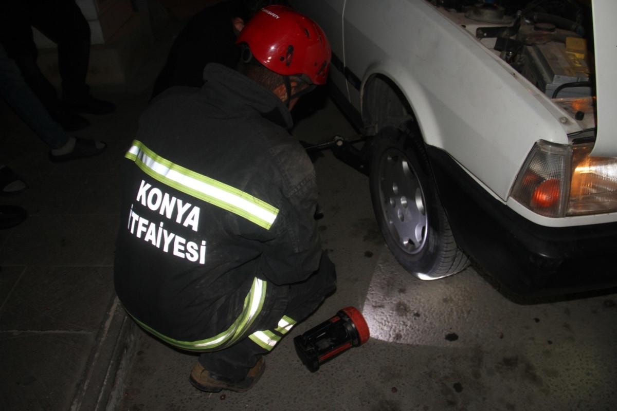 Konya'da Beyşehir ilçesinde Atatürk Caddesi’nde park halinde duran bir otomobile yılan girdiğini fark edenler, durumu sürücüsüne haber verdi.