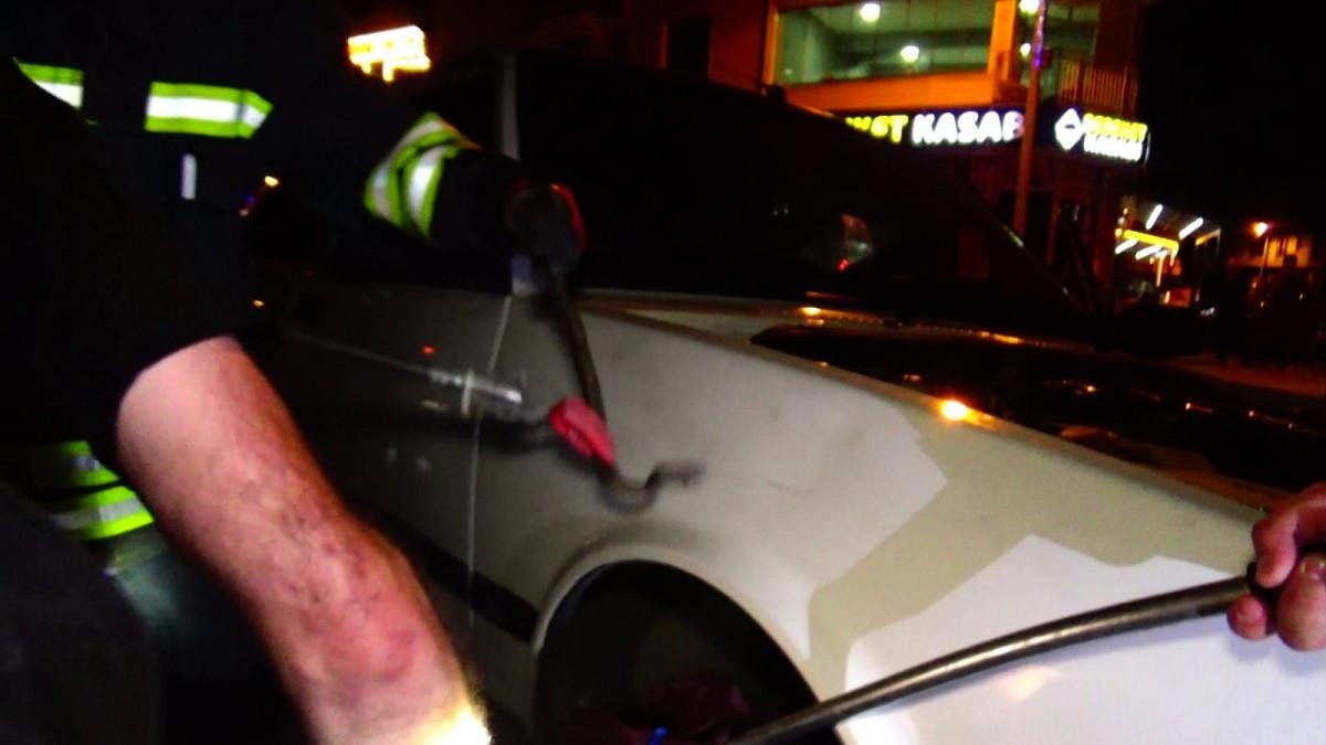 Adrese gelen itfaiye ekipleri, yılanı sıkıştığı jant içerisinden çıkarabilmek için seferber oldu.