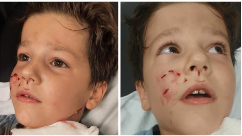 Yüzünden ve boynundan yaralanan çocuk, çevredekilerin yardımıyla kurtarıldı.