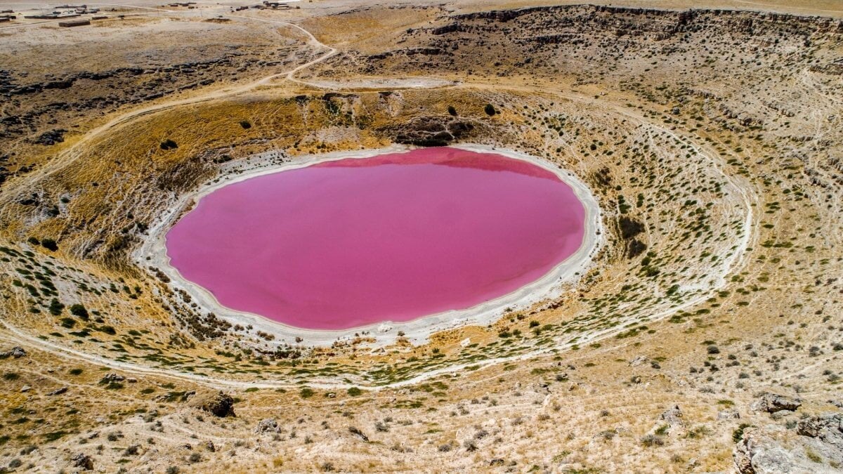 1 kilometreden fazla bir çapa sahip olan Meyil Obruk Gölü’nün pembeye dönmesinin nedeni de, suların azalmasıyla meydana gelen bakteri patlaması olarak belirtildi.