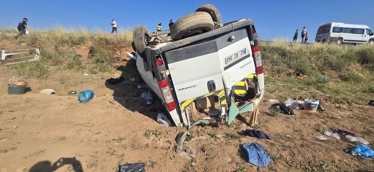 Yaşar T. yönetimindeki tarım işçilerini taşıyan 42 VZ 040 plakalı minibüs, sürücüsünün kontrolünden çıkarak şarampole devrildi.