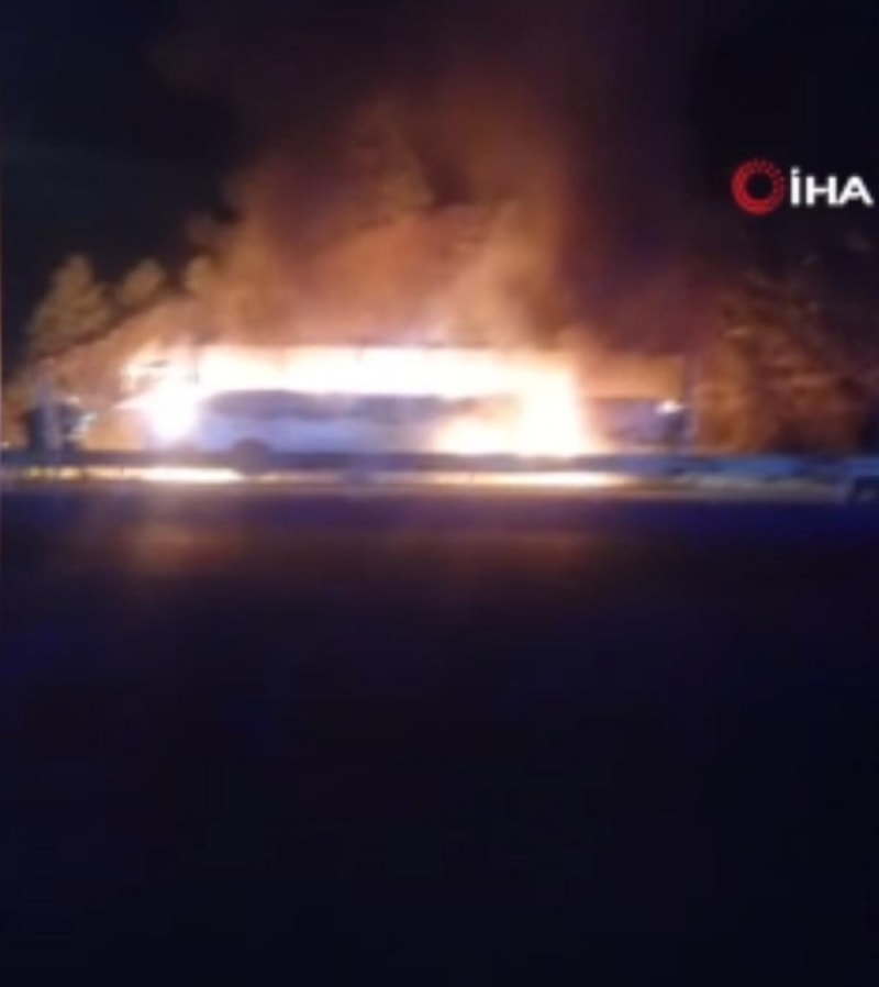 Konya’nın Seydişehir ilçesinde bir yolcu otobüsü alev alev yandı.