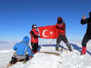 Dağcılar yer yer kar kalınlığının 2 metreye ulaştığı, hava sıcaklığının ise sıfırın altında 35 dereceye kadar düştüğü bölgede 9 saat süren tırmanış sonrası dağın zirvesine ulaştıktan sonra Türk Bayrağı açarak birlik ve beraberlik mesajı verdi.