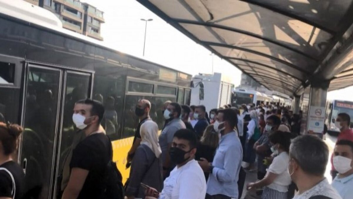 İstanbul'da haftanın son iş gününde mesai çıkışı evlerine dönenlerin akın ettiği metrobüste, akşam saatlerinde yoğunluk görüldü.