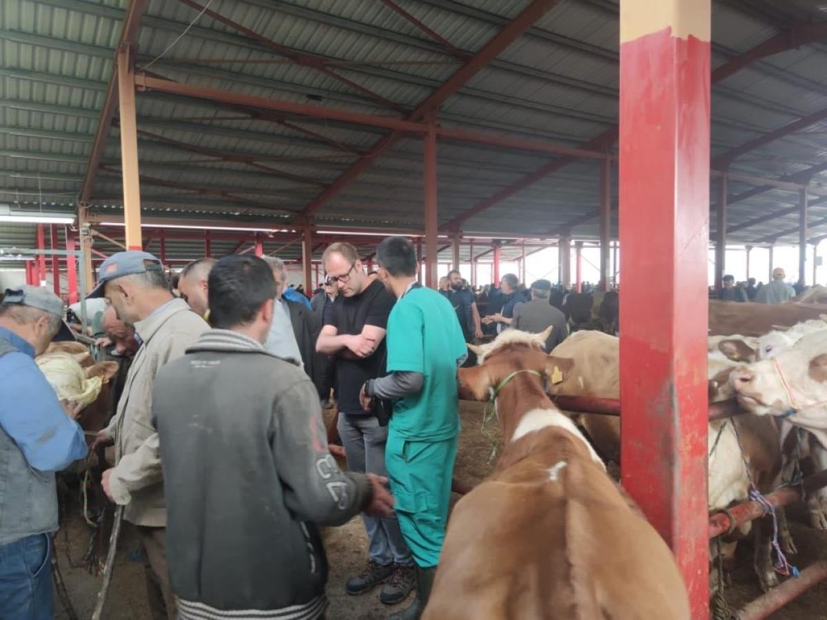 Kastamonu Damızlık Sığır Yetiştiricileri Birliği tarafından işletilen Kastamonu Canlı Hayvan Pazarı'nda Tarım ve Orman İl Müdürlüğü Hayvan Sağlığı Şube Müdürü Burak Eminoğlu ile teknik ekibi, hayvan hastalıkları denetiminde bulunarak ayrıca evrak kontrolü de yaptı.