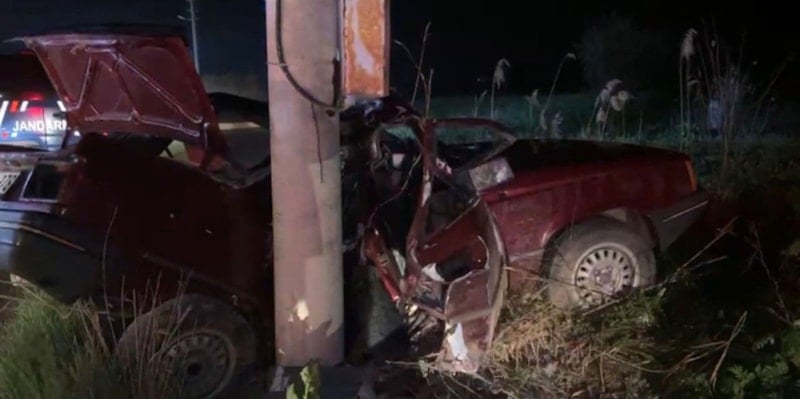 Savrulan otomobil, yol kenarında bulunan beton direğe çarparak demir yığını haline dönüştü. Kazayı görenlerin ihbarı üzerine olay yerine sağlık, polis ve itfaiye ekipleri sevk edildi.