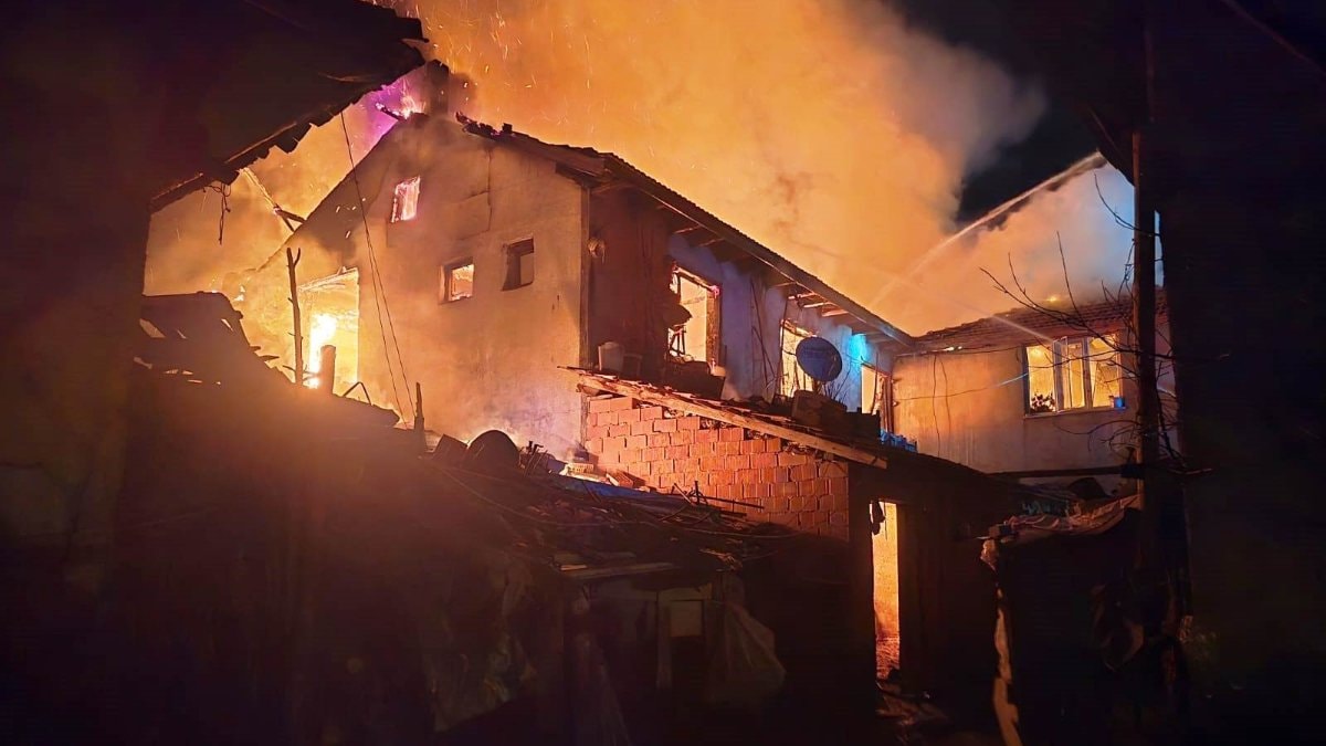 Kütahya'nın Hisarcık ilçesine bağlı Kurtdere köyünde Mehmet Şengül’e ait iki katlı ahşap binada henüz belirlenemeyen nedenle yangın çıktı.