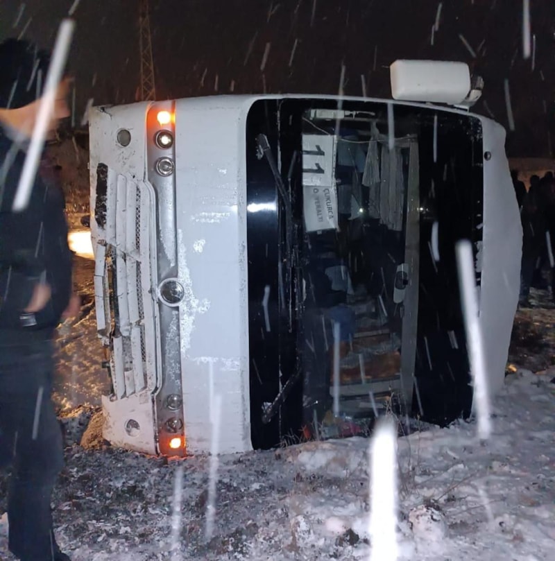 Kütahya’nın Tavşanlı ilçesinde Tunçbilek Garp Linyit İşletmeleri'nden Domaniç ilçesine kömür işçilerini taşıyan A.G. (66) idaresindeki 43 AFN 325 plakalı servis aracı, Tunçbilek çıkışında buzlanma nedeniyle kontrolden çıkarak yan yattı.