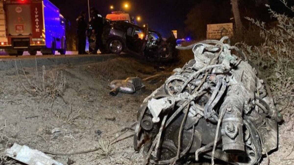 Otomobilin motoru yerinden koparken, Ali Keler ile yanındaki Emre Çakır (27), araçta sıkışarak yaralandı. Çevredekilerin ihbarı üzerine kaza yerine sağlık, polis ve itfaiye ekibi sevk edildi.