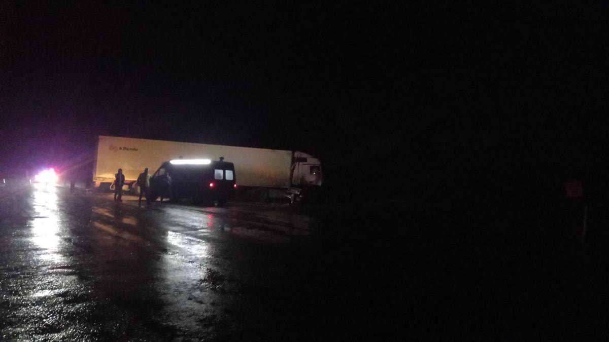 Tır, yolun sol tarafına geçerek aynı istikamette seyir halinde olan Ramazan Şakir Yılmaz (21) idaresindeki 43 UZ 557 plakalı aracın üzerine devrildi.