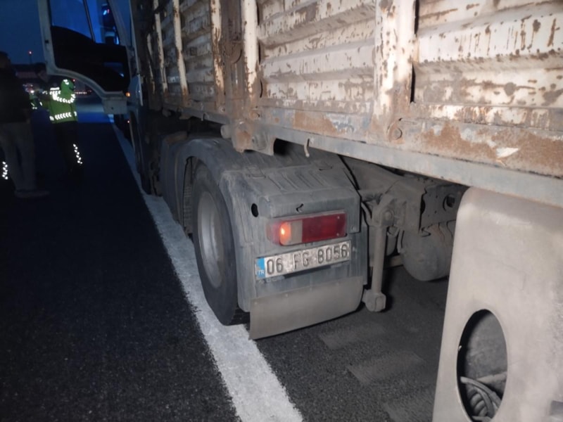 İstanbul'da saat 06.00 sıralarında Kuzey Marmara Otoyolu Ömerli mevkiinde, Ankara istikametinde seyir halindeki 06 FG 8056 plakalı tırın dorsesine, seyir halindeki 55 EJ 683 plakalı kamyon çarptı.