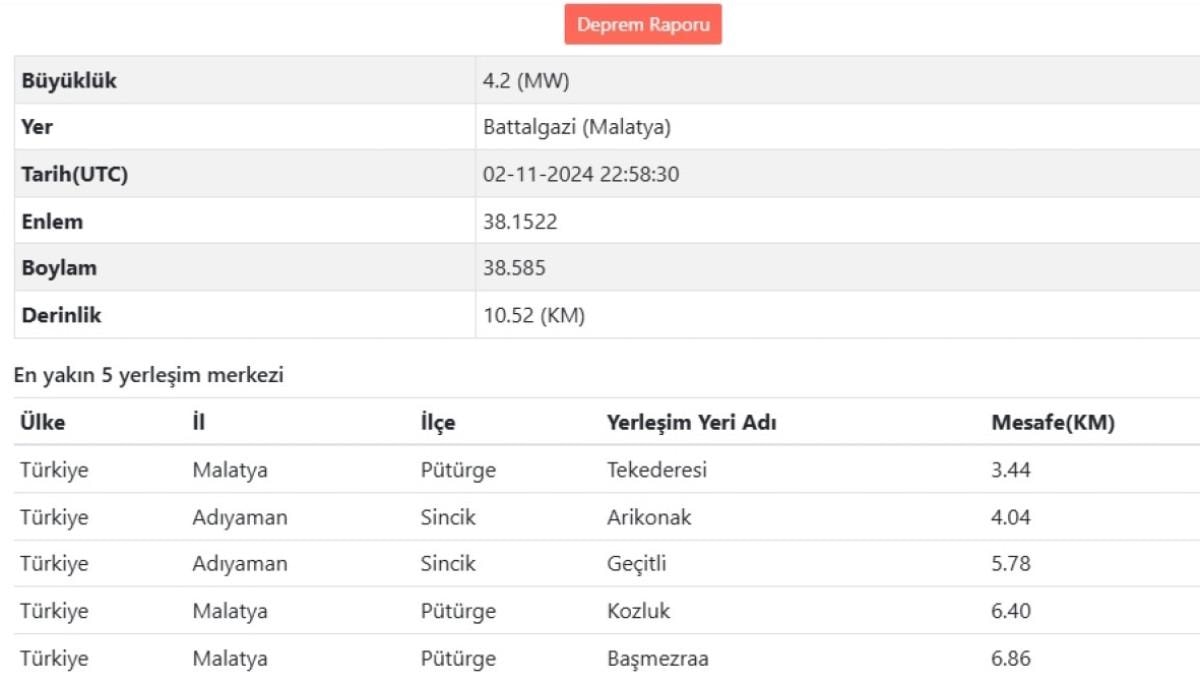 AFAD’ın paylaştığı bilgilere göre, depremin derinliği 10.52 kilometre olarak ölçüldü.