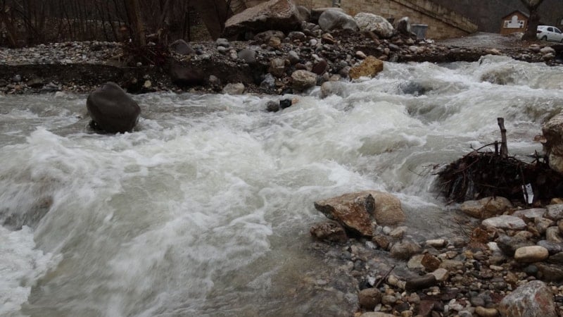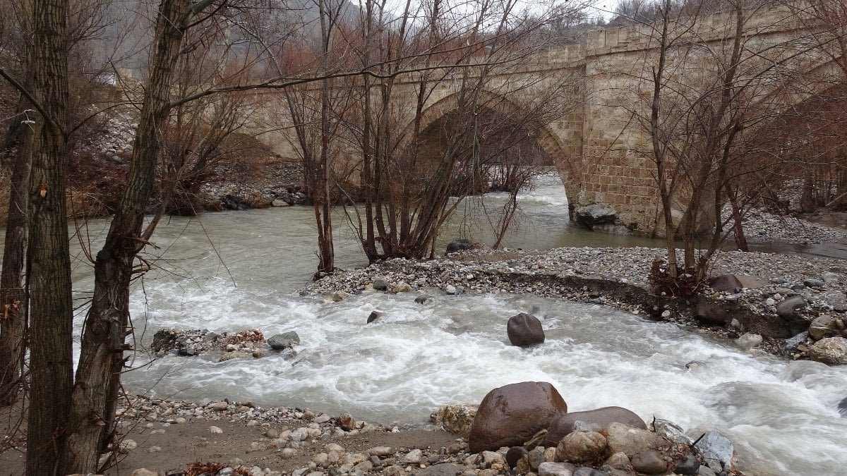 Arapgir ilçesinde aralıklarla devam eden yoğun yağışlar sonrası debisi yükselen Kozluk Çayı taştı.