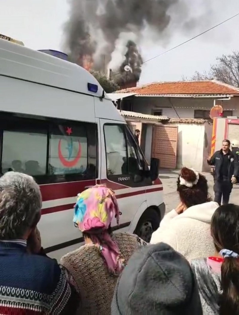 Manisa'nın Akhisar ilçesinde Hacıishak Mahallesi 135. Sokak'ta tek katlı evde belirlenemeyen bir sebeple çıkan yangın kısa sürede büyüdü.