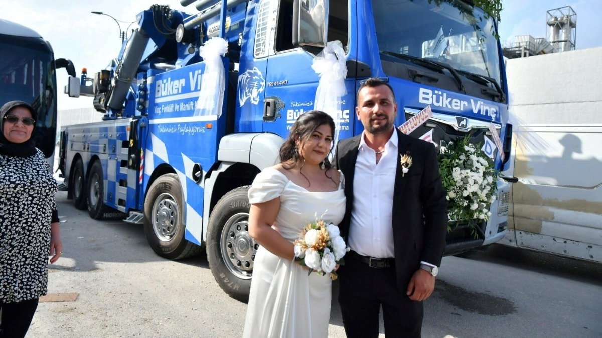 Damat, elinden tutarak gelini vincin kabinine bindirdi ve ardından bir araç konvoyu eşliğinde nikahlarının kıyılacağı Yunus Emre Millet Çarşısı’na doğru yola çıktı. Nikahları, memur Yunus Kafalı tarafından kıyılan çift, hayatlarını resmen birleştirdi.