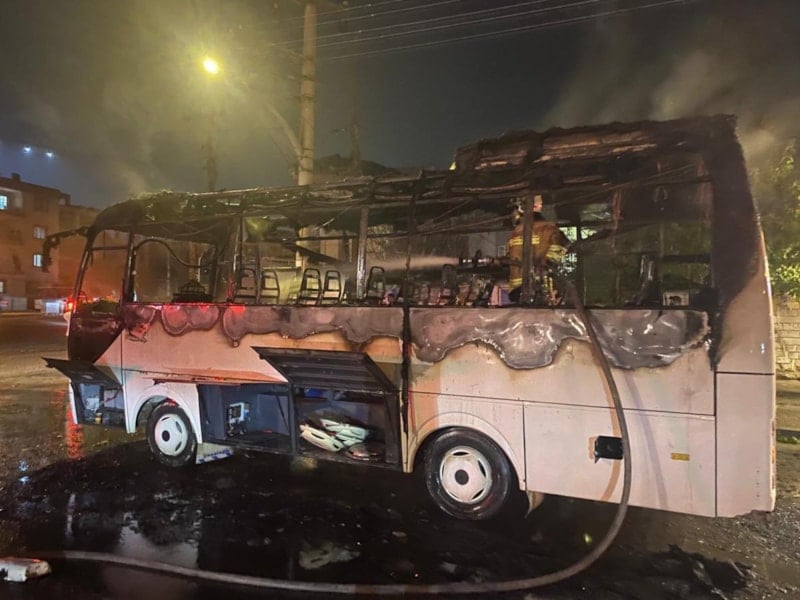 SERVİS OTOBÜSÜYLE BİRLİKTE 4 MOTOSİKLET DE ALEVLERE TESLİM OLDU