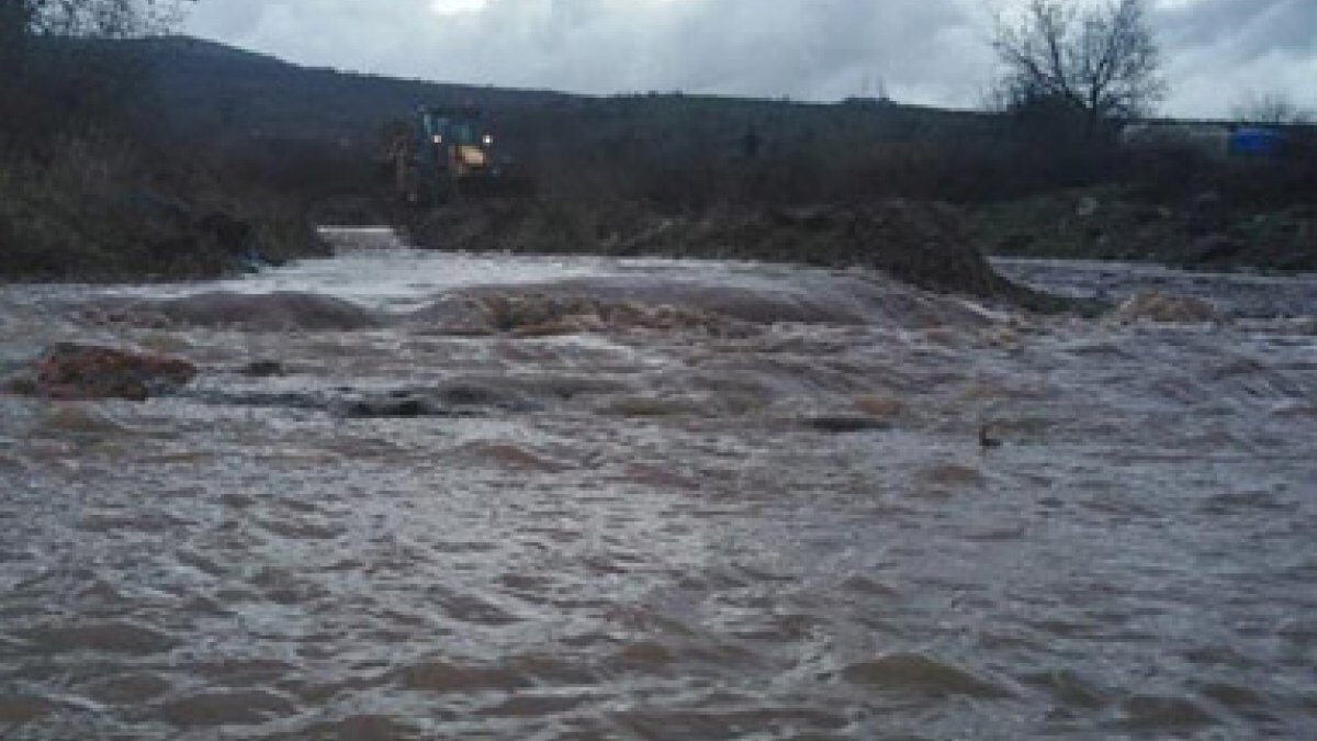 Şirin Mahallesinde de köy deresinin taşması sonucu caddeler su ve taşlarla kaplandı.