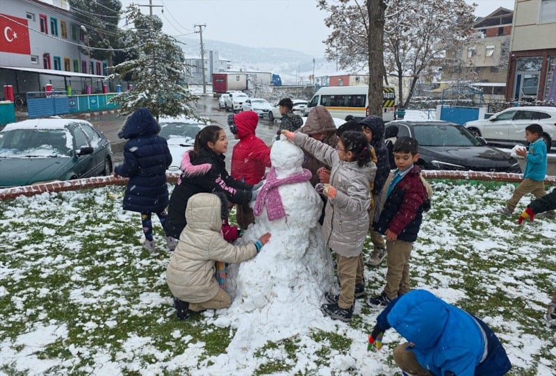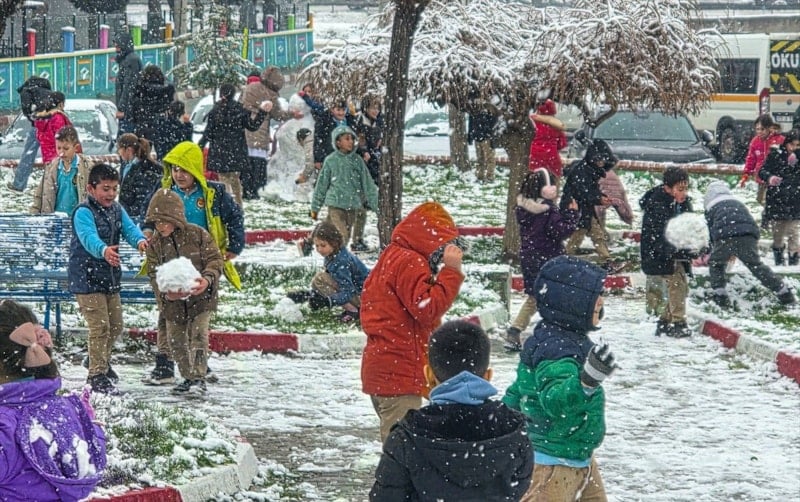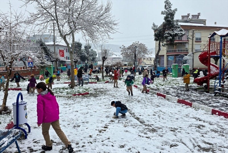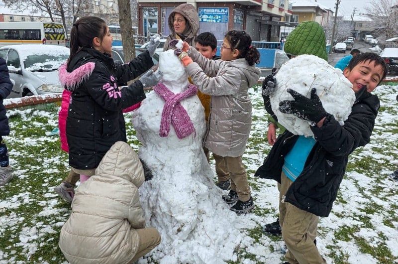 Yılın ilk kar yağışını büyük bir sevinçle karşılayan Rafet Üçelli İlkokulu öğrencileri, teneffüste okul bahçesi ve parkta kar topu oynadı, kardan adam yaptı ve öğretmenleriyle birlikte karın tadını çıkardı.