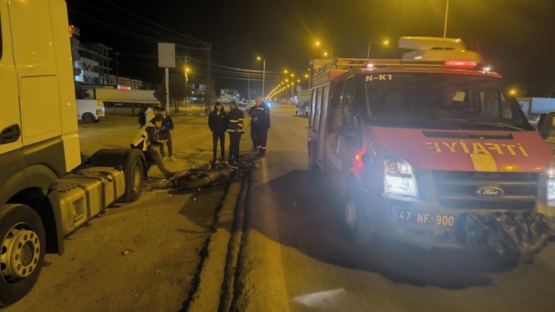 Mardin’in Nusaybin ilçesinde 8 Mart Mahallesi'nde kontrolden çıkan motosiklet, park halindeki tıra çarptı.