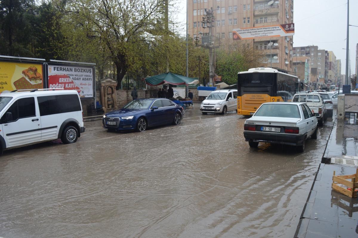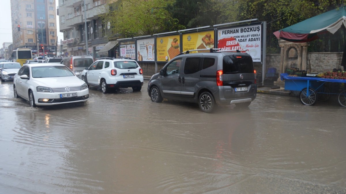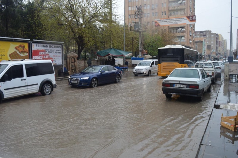 Kızıltepe ilçesinde öğleden sonra etkisini artıran sağanak nedeniyle birçok mahallede rögarlar taştı, yollar suyla doldu.