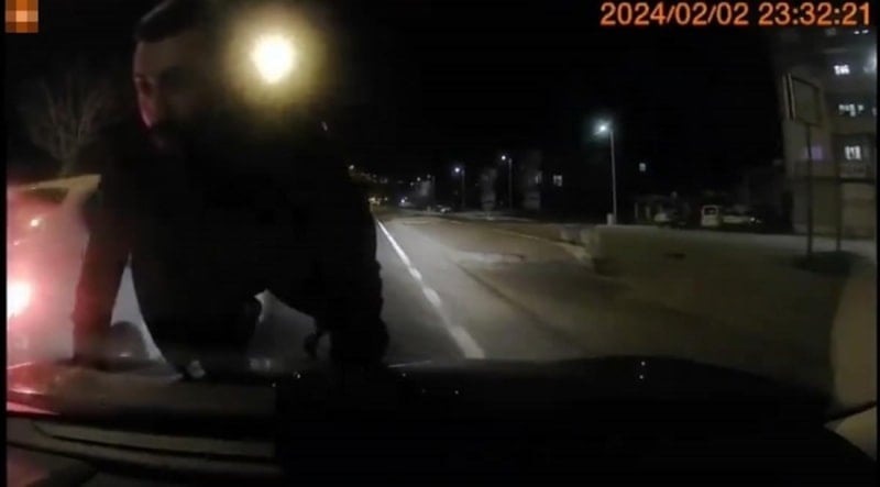 Mardin'de görevli bir hakim olan H.Ü., trafikte seyir halindeyken yol isteyen 3 şüpheli ile arasında yaşanan anlaşmazlık büyüdü. Otomobilin kaputuna çıkan şüpheliler serbest kalırken yaşanan o anlar kameraya yansıdı.