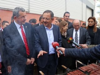 Başkan Özhaseki konuşmasının ardından Aile ve Sosyal Politikalar Bakanı Ayşenur İslam ile mangalda pişirilen sucukları ekmek arasında kongreye katılanlara dağıttı. Bakan İslam, ikramı önce gazetecilere yaptı. Daha sonra kadınlara verdi.