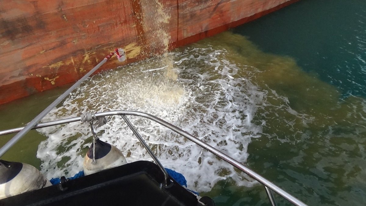 Söz konusu gemiden denize boşaltılan atıklardan numune alan ekipler, denizi kirlettiği için 2 gün önce 3 milyon 674 bin TL kesti.
