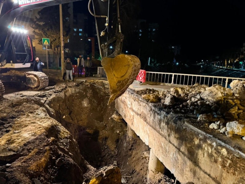 Büyükşehir Belediyesi ekipleri de köprü üzerinde onarım çalışması başlattı.
