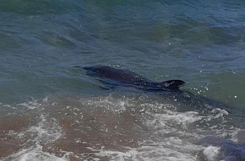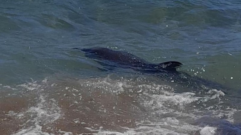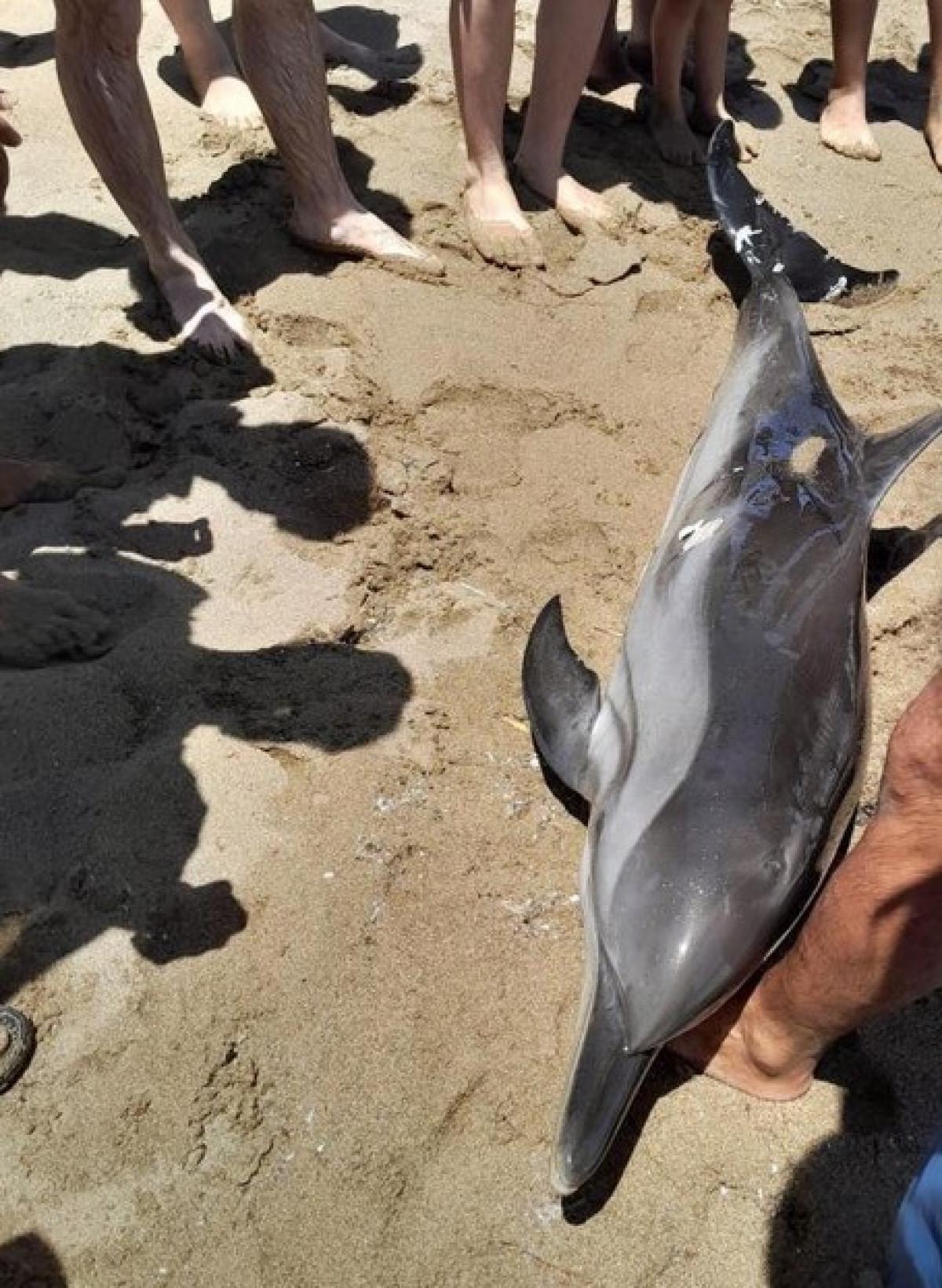 Kıyıya vuran yunusu gören vatandaşlar önce şaşkınlık yaşadı, ardından harekete geçti.