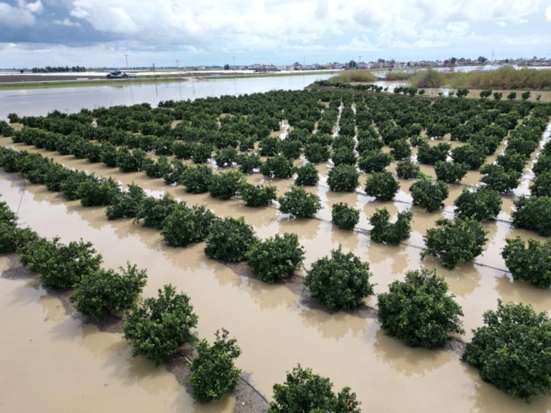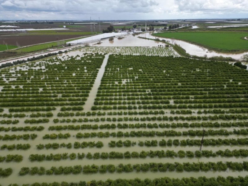 Bölgede bulunan seralarda kabak, patlıcan, kavun ve biber gibi ürünlerin yanı sıra nektarin ve limon ağaçlarının da sular altında kaldığı bildirildi.