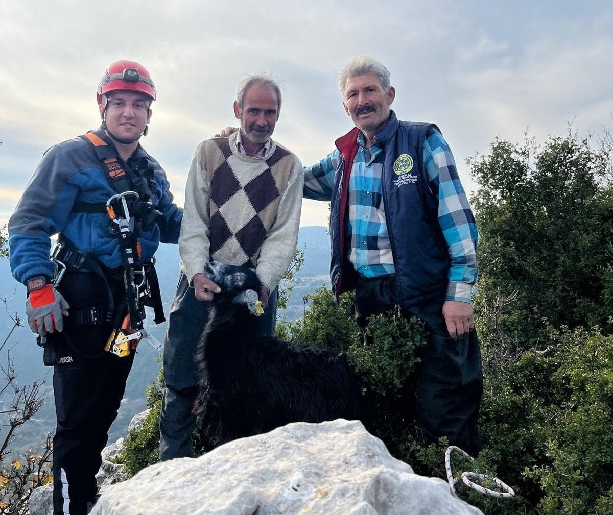 Karabulut’un rehberliğinde yaklaşık 50 dakika süren yürüyüşle keçilerin bulunduğu noktaya ulaşan ekipler, ipli erişim tekniği kullanarak kayalıklara indi. Titizlikle yürütülen çalışma yaklaşık 1 saat sürdü.