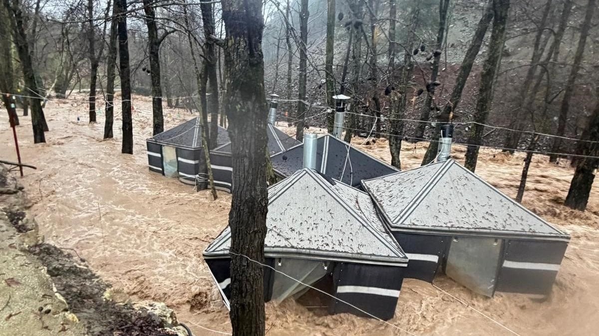 Taşkın sırasında işletme çevresindeki çadırların suya kapıldığı görülürken, vatandaşlar çadırları kurtarmak için kendi imkanlarıyla müdahale etmeye çalıştı.