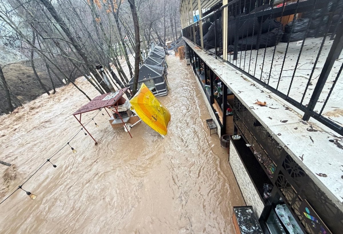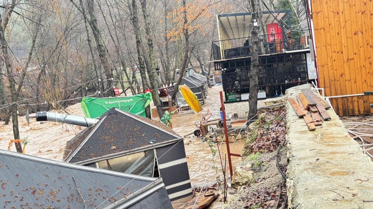 Ancak akıntının şiddeti nedeniyle çadırlar sürüklenirken, müdahale girişimleri sonuçsuz kaldı. Restoran ve çevresindeki alanın tamamen sel sularıyla kaplandığı anlar cep telefonu kameralarına yansıdı.