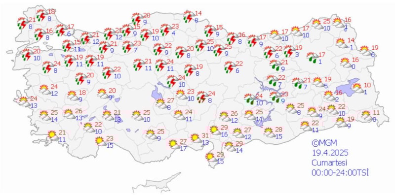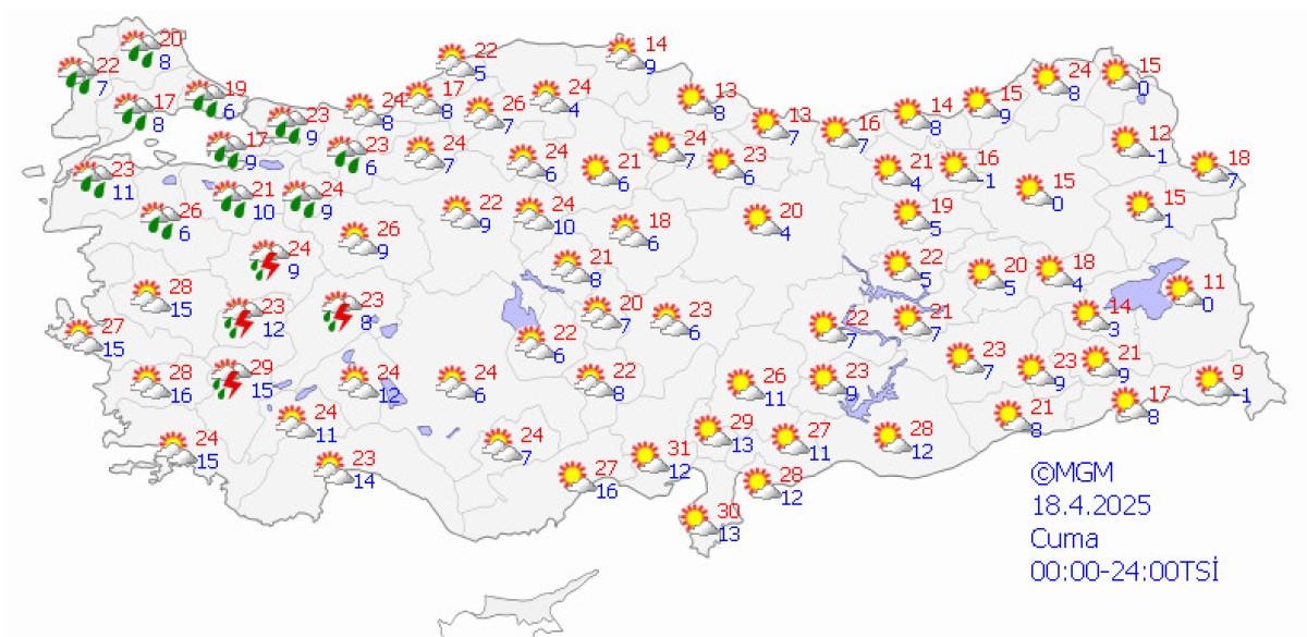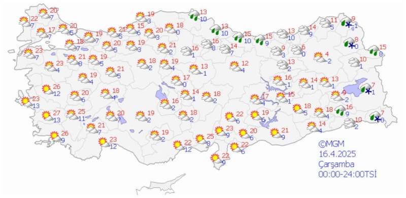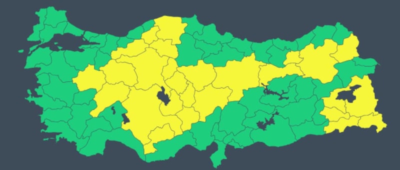 Meteoroloji Genel Müdürlüğü, 27 il için sarı kodlu uyarı yayımladı.