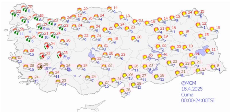 İzmir'e ise güneş hakim; yağış beklenmiyor, sıcaklık 27 dereceye kadar yükselecek.