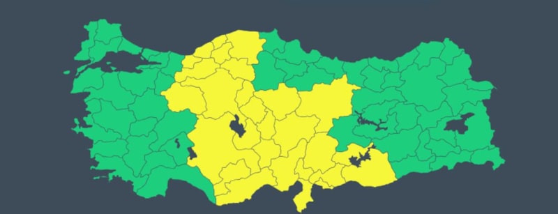 Sarı uyarı verilen iller şu şekilde sıralandı;